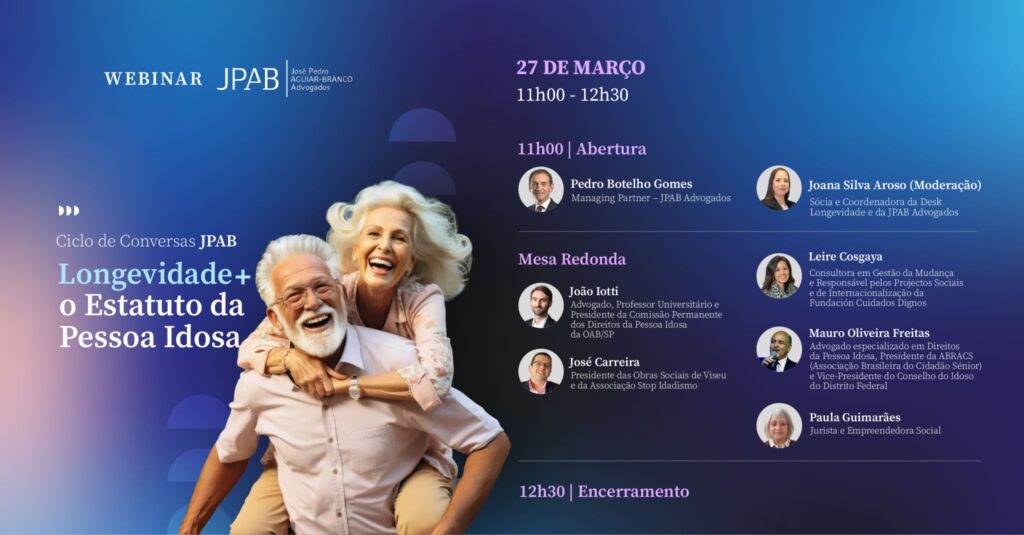 A JPAB promove, no próximo dia 27 de março, às 11h, a primeira sessão do 𝐂𝐢𝐜𝐥𝐨 𝐝𝐞 𝐂𝐨𝐧𝐯𝐞𝐫𝐬𝐚𝐬 𝐉𝐏𝐀𝐁 – 𝐋𝐨𝐧𝐠𝐞𝐯𝐢𝐝𝐚𝐝𝐞+, dedicada ao debate sobre o 𝐄𝐬𝐭𝐚𝐭𝐮𝐭𝐨 𝐝𝐚 𝐏𝐞𝐬𝐬𝐨𝐚 𝐈𝐝𝐨𝐬𝐚,…